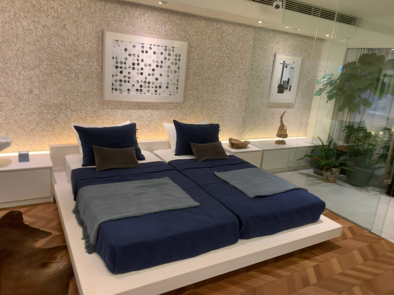 各空間はガラスで区切られているので向こう側が見え、広々とした空間を味わえます。