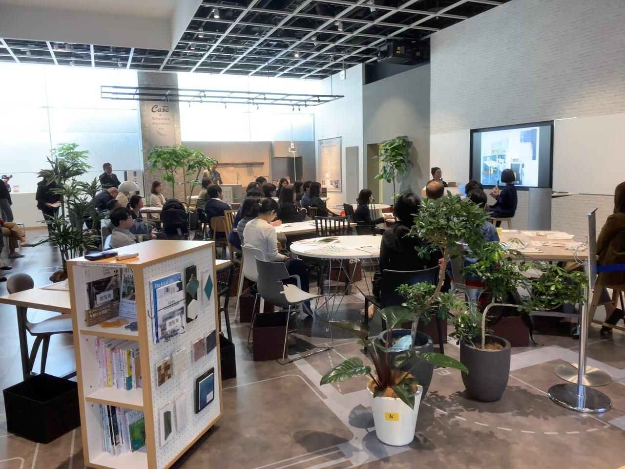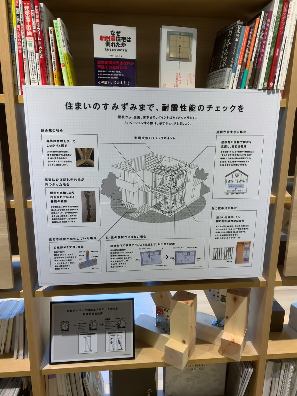 実際のモノや本を置いて本リノベーションに関するノウハウを説明しています。