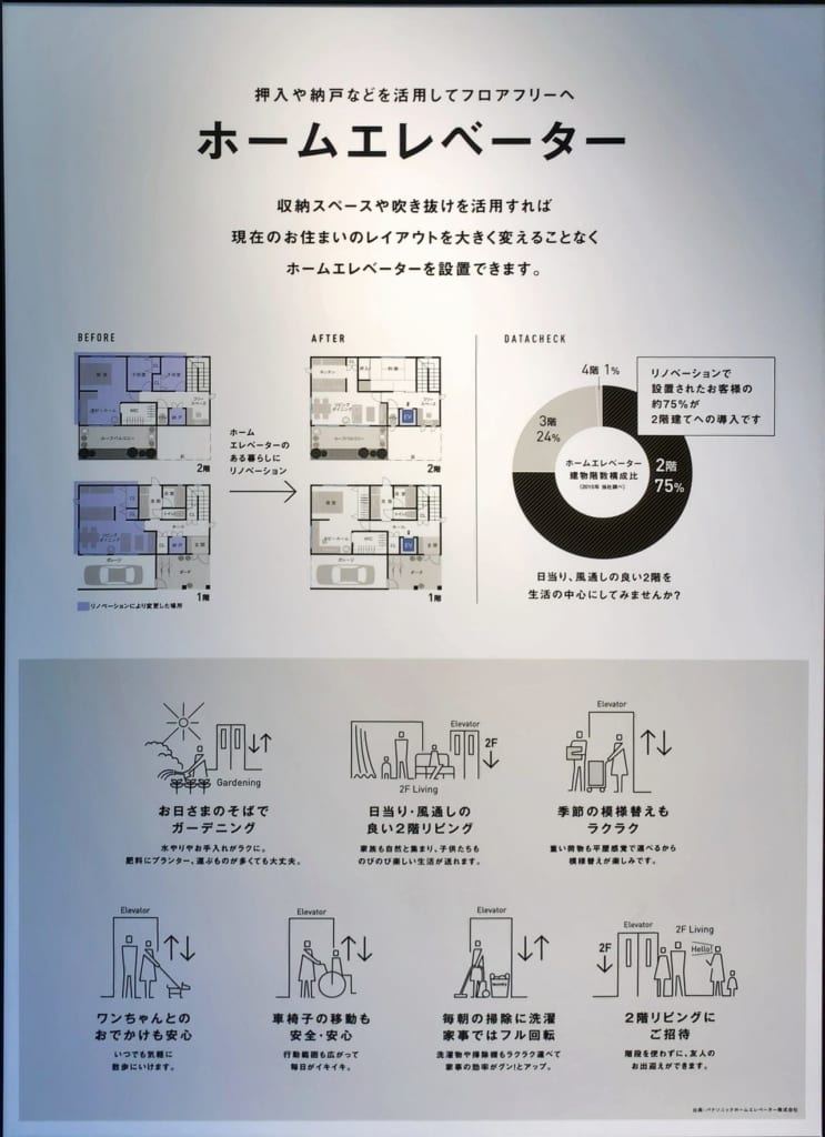 高齢者向けに宅内エレベーターも展示されています。