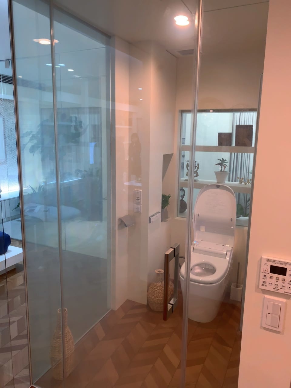 そこはさすがパナソニック、スイッチを押すとガラスが不透明になって見えなくなります!