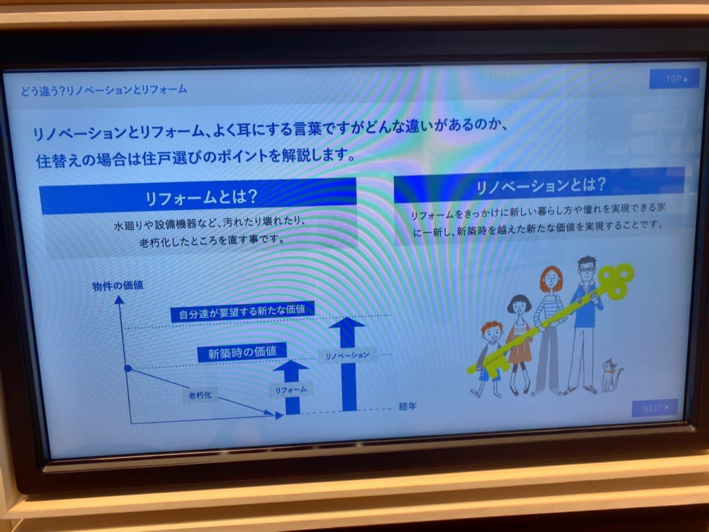 タッチパネルで自分に合った暮らしをナビゲーションしてくれたり、リノベーションについて勉強ができます。