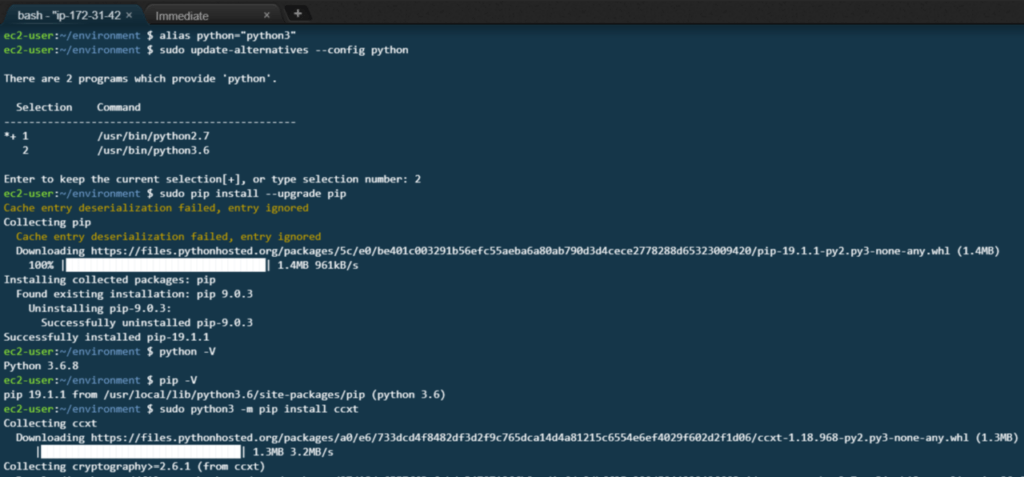 alias python="python3" sudo update-alternatives --config python # 選択肢が表示されたら2を入力してenter.