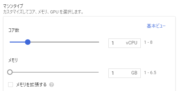 GCPの場合はsmall(共有vCPU×1、メモリ1.7GB)のプランがよいでしょう。