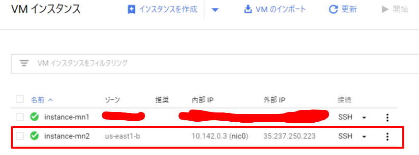 成功すれば先程作成したVMインスタンスのIPアドレスの左に設定した名前が付きます。