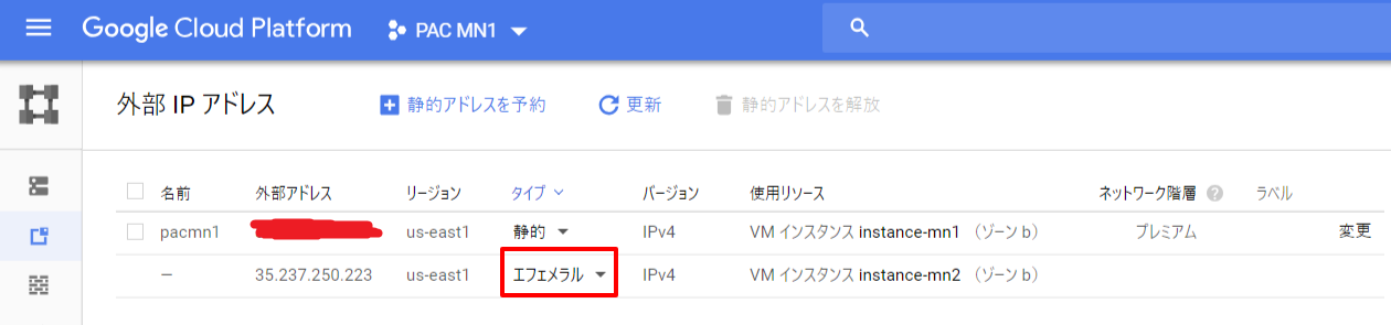 VultrのVPSは静的(固定)IPアドレスが割り振られるようですが、GCPのVMはデフォルトだとグローバルIPアドレスがエフェメラルになっており、変わる事があります。
