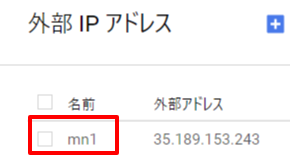 名前は適当でよいですが、mn1などマスターノードとわかりやすい名前にしておくと管理が楽です。