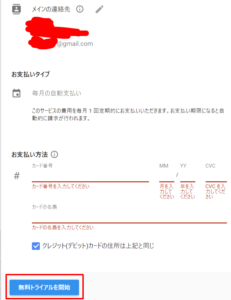 登録に必要な情報を埋めて、「無料トライアルを開始」ボタンを押して登録してください。