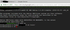 また、作業フォルダも以下のコマンドでrootに移動します。