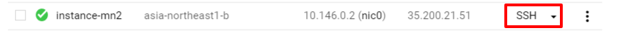 VMインスタンスの画面でSSHを押してください。
