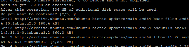途中で[Y/n]と聞かれるので、yと入力してエンターを押しましょう。