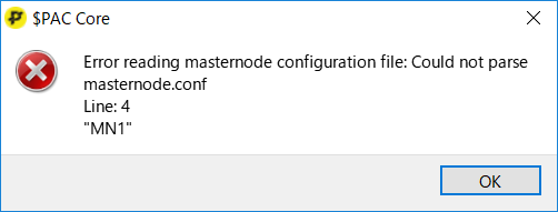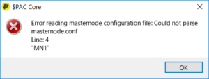 もし起動できなくなった場合は以下のパス(デフォルト)のmasternode.confをメモ帳等で開いて全部消すか、正しいフォーマットで必要な情報を記載して保存し直してください。