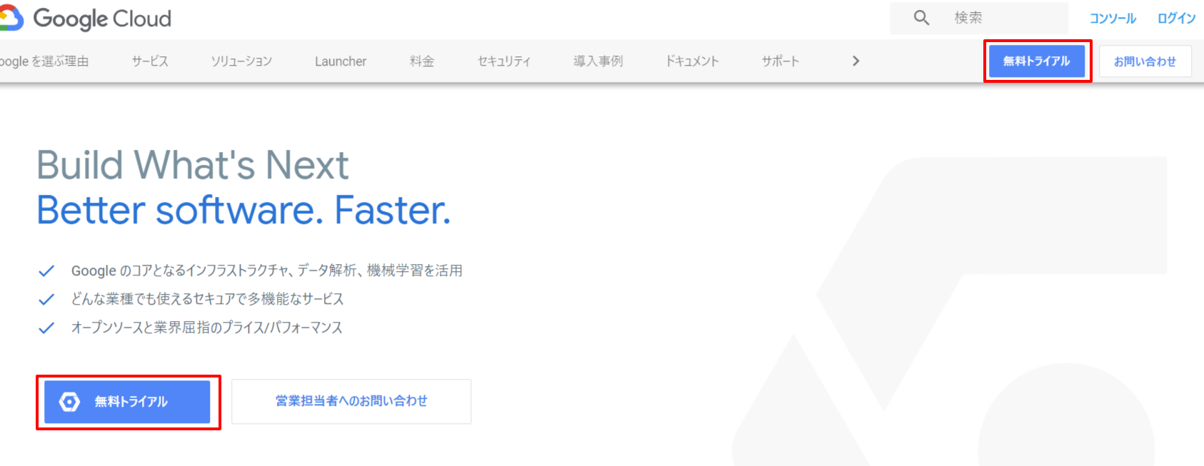 まずはGCPのアカウントを作成しましょう。(※Googleアカウントが必要です)