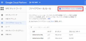 ファイアウォールルールを作成をしていきます。