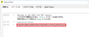 masternode.confに必要な情報を正しく書いて保存したら、ウォレットを再起動します。
