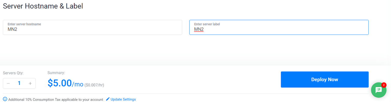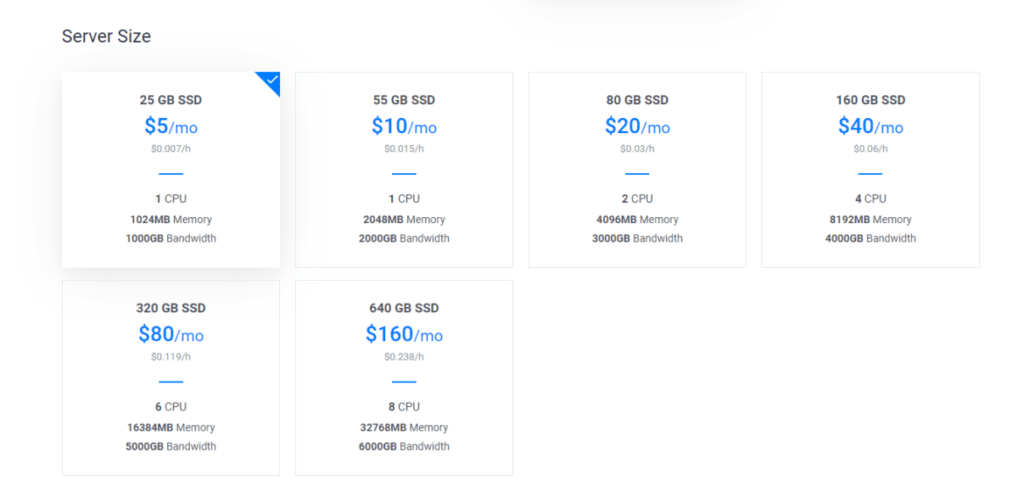 Sever Sizeはメモリ1GBあればよいので$5/月の最小サイズを選択