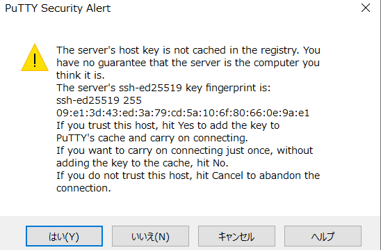 初回接続時は以下のような画面が表示されますが、気にせずはいを押してください。