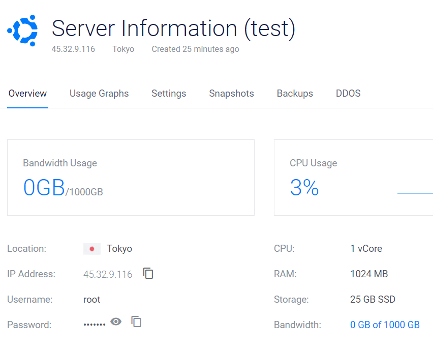 作成したVPSをクリックすると詳細が見れます。