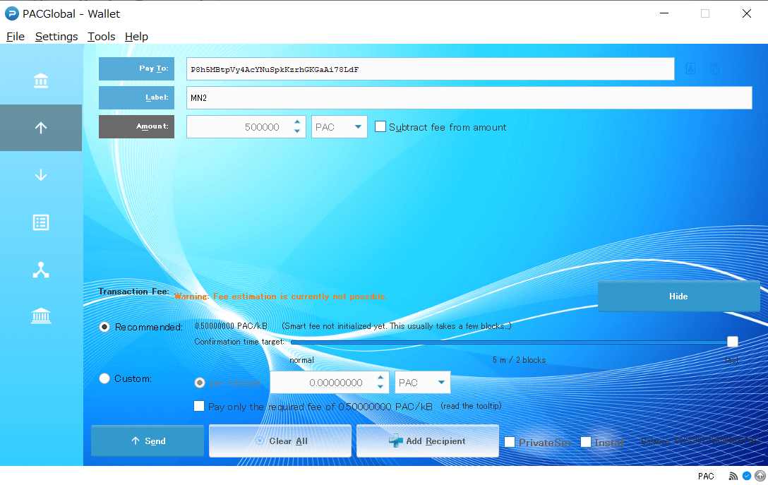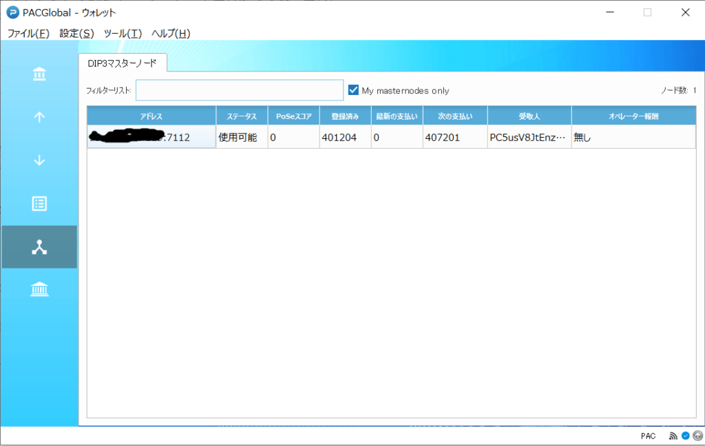- ウォレットに資産が500,000pac以上ある事(マスターノード1つ毎に必要)