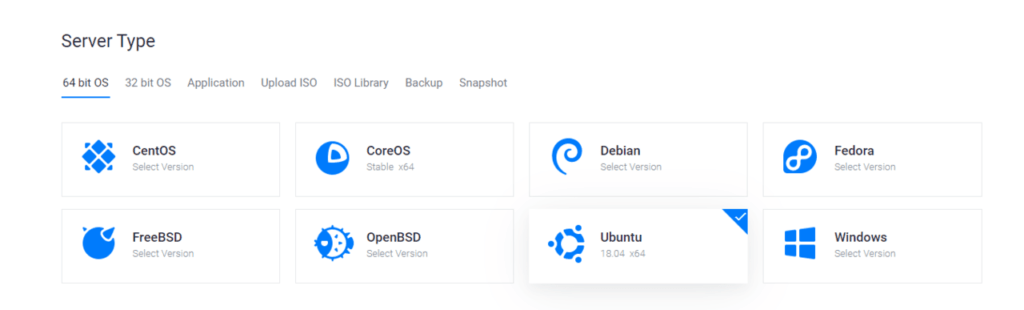 Server TypeはUbuntu 18.04 x64を選択