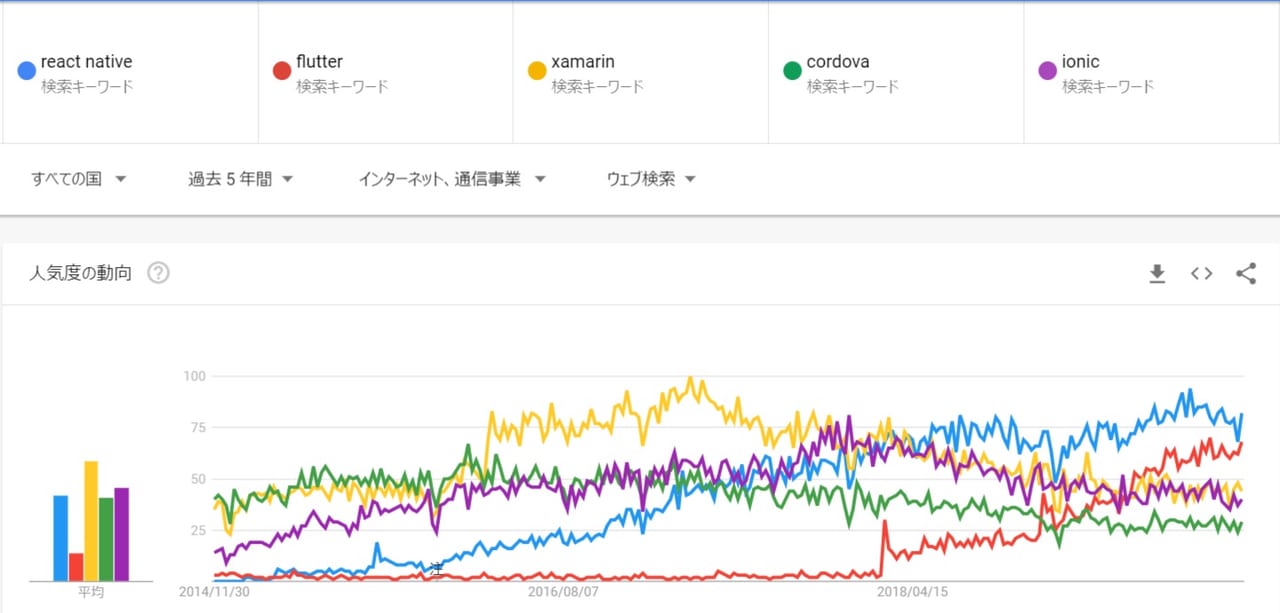 そしてFlutterは最近正式版がリリースされたばかりですが、凄い勢いで上昇しています。
