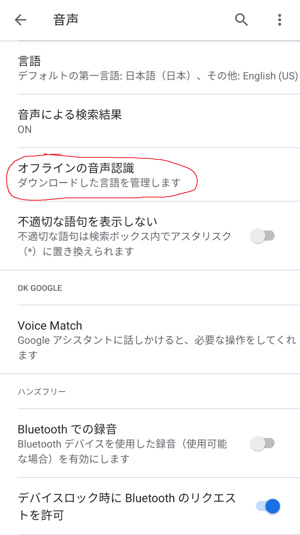 オフラインの音声認識メニューのすべてのタブから日本語を選択してインストールしてください。